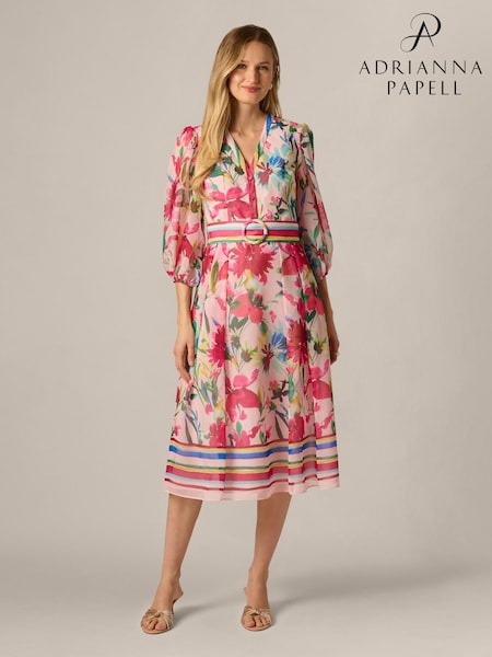 Adrianna Papell Blue Floral Crepe Ankle Dress
