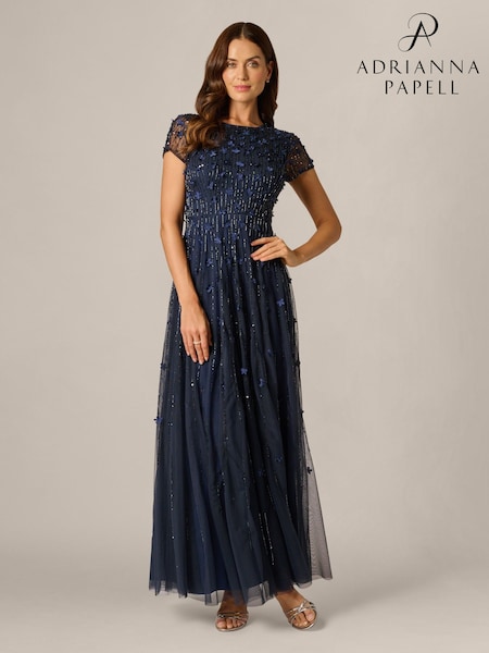 Adrianna Papell Blue Beaded Dress