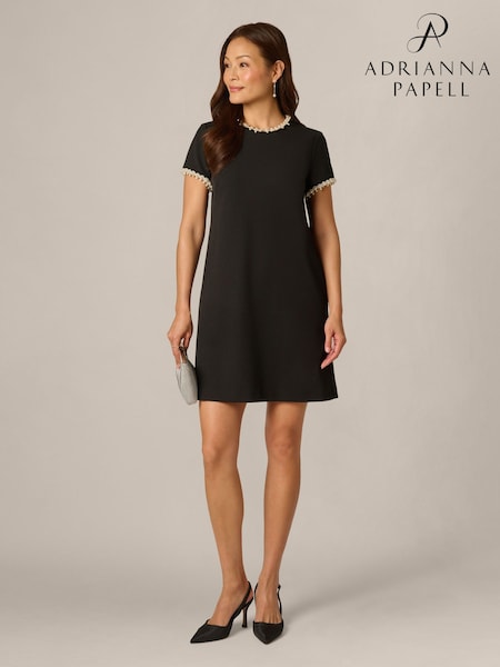 Adrianna Papell Black Petite Pearl Crepe Short Dress