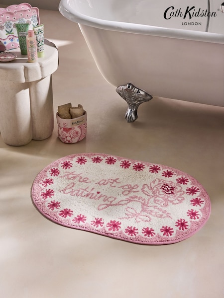 Cath Kidston Pink Bathing Slogan 100% Cotton Bath Mat