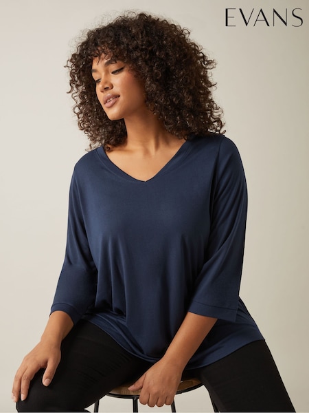 Evans Blue 3/4 Sleeve V-Neck Modal T-Shirt