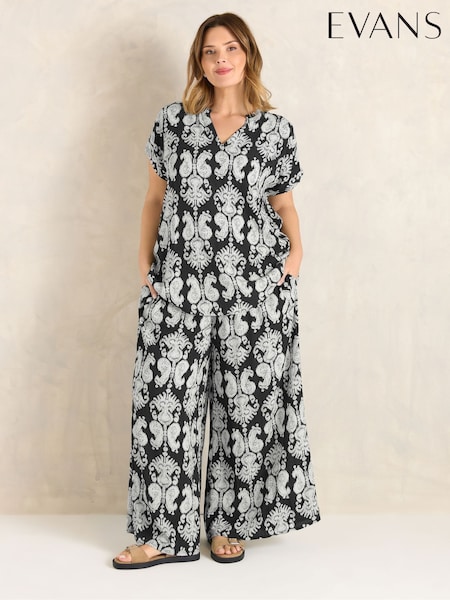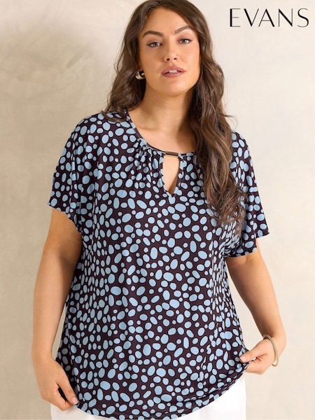 Evans Black Abstract Print Frill Neck Blouse