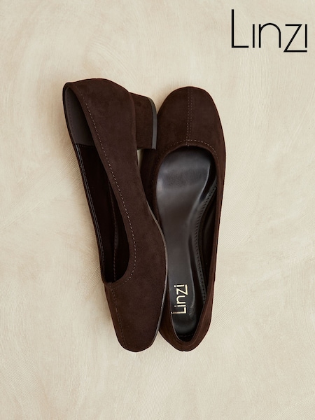 Linzi Brown Origin Square Toe With Low Block Heel Pumps