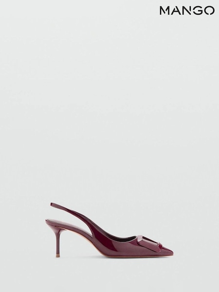 Mango Burgundy Lapel Collar Faux Leather Belted Jacket