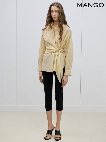 Mango Yellow Tie Waist Stripe Long Sleeve Shirt