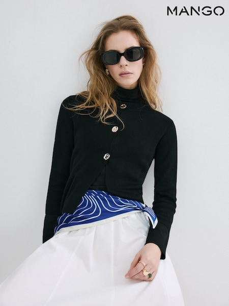 Mango Black Knitted Cardigan With Gold Jewel Button