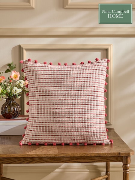 Nina Campbell Red Woven Pom Cushion