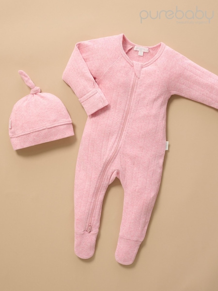 Purebaby Pink Pointelle Sleepsuit & Hat