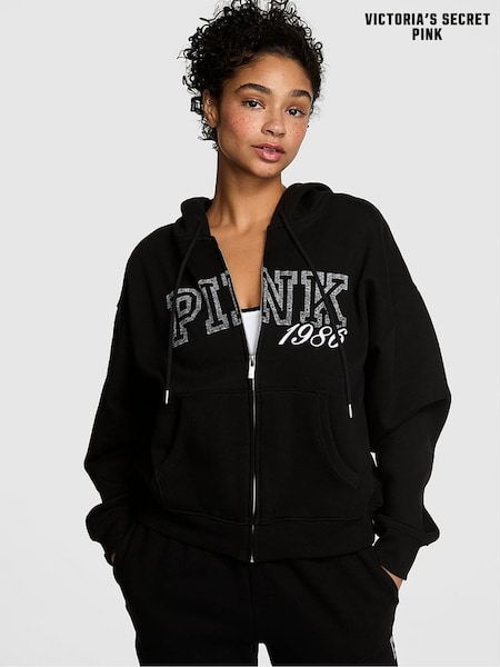 Victoria's Secret PINK Black and Grey Fleece Zip Up Hoodie