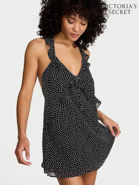 Victoria's Secret Black Chiffon Polka Dot Flutter Mini Dress