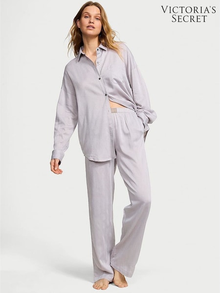 Victoria's Secret Dove Grey Herringbone Cotton Modal Long Pyjamas Set