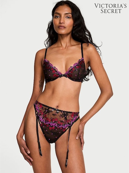 Victoria's Secret Black Cherry Bomb Embroidered Garter Belt