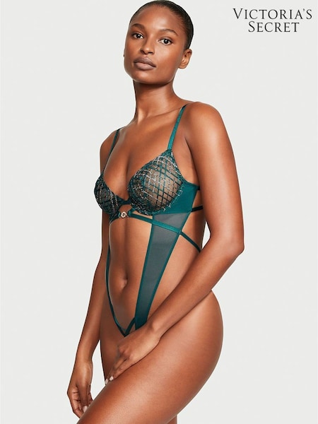 Victoria's Secret Black Ivy Green Geo Bodysuit