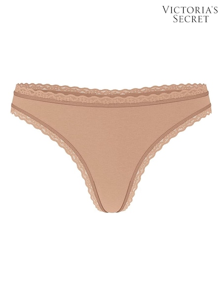 Victoria's Secret Praline Nude Thong Cotton Lace Trim Knickers