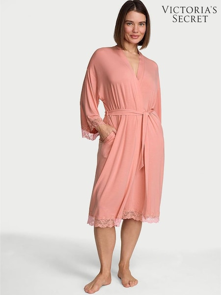 Victoria's Secret Blush Pink Modal Lace Trim Robe