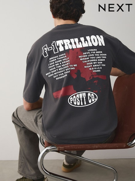 Charcoal Grey Post Malone Relaxed Fit Band Graphic Print T-Shirt