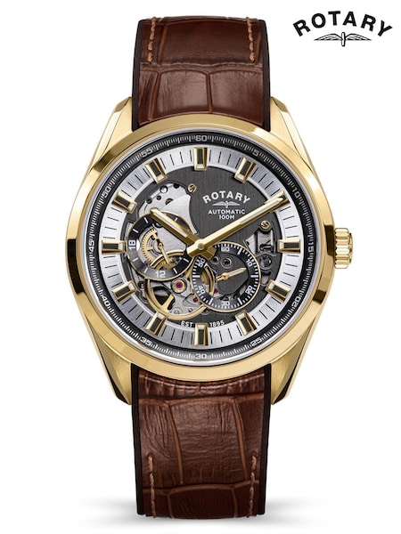 Rotary Black Ultra Slim Gold Plated Strap Watch