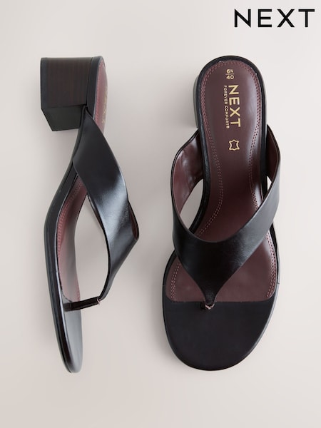 Black Leather Standard/Wide Fit Square Toe Thong Sandals