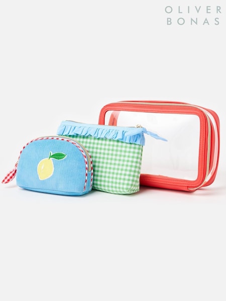 Oliver Bonas Set of 3 Green Blue & Orange Wash Bags