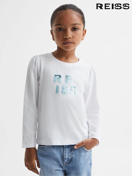 Reiss White Ria 4-9 yrs Cotton Sequin Motif Top