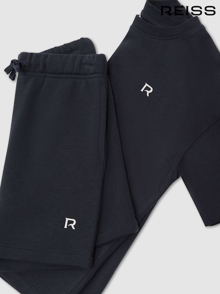 Reiss Navy Avern Set 9-13 yrs Logo T-Shirt and Shorts Set Cotton-Blend