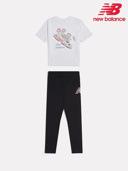 New Balance White Floral Shoe Graphic T-Shirt and Leggings Set