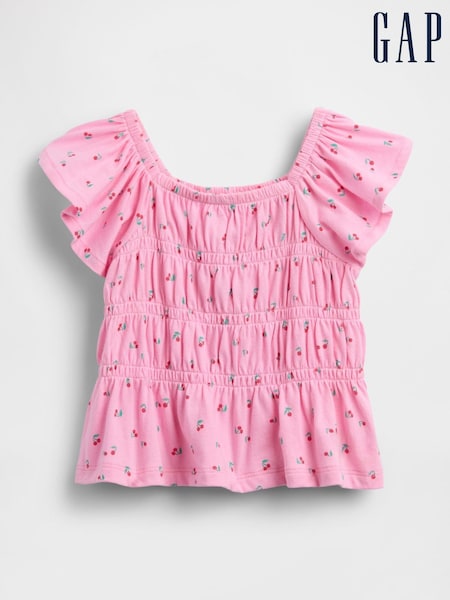 Gap Pink Cherry Smocked Flutter-Sleeve Top (6mths-5yrs)