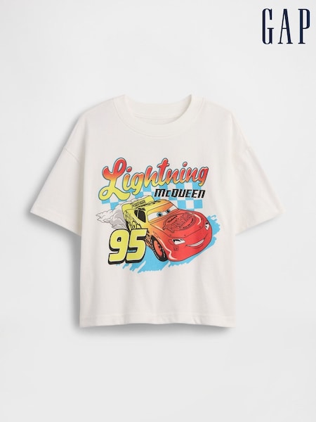 Gap White Lighning McQueen Disney Oversized Graphic T-Shirt (6mths-5yrs)