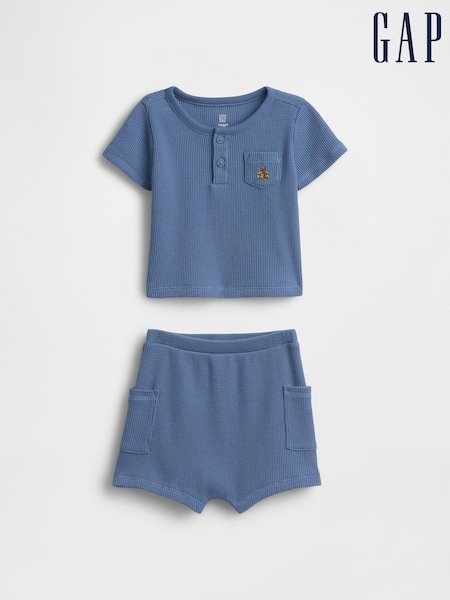 Gap Blue Waffle Henley Outfit Set (0-24mths)