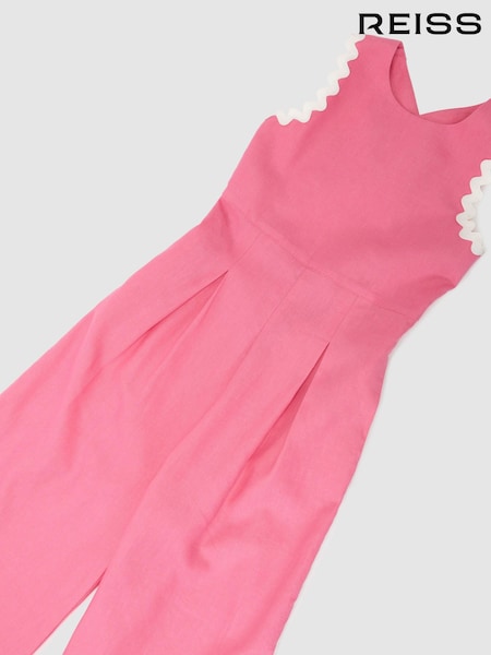 Reiss Pink Cerese 13-14 yrs Linen-Blend Wave-Trim Cross-Back Jumpsuit