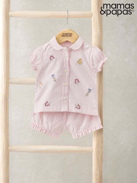 Mamas & Papas Pink Floral Embroidered Woven Pyjamas