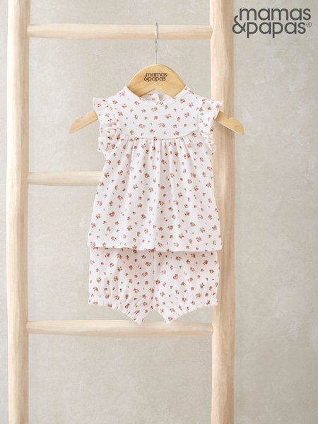 Mamas & Papas Cream Woven Rose Print Pyjamas