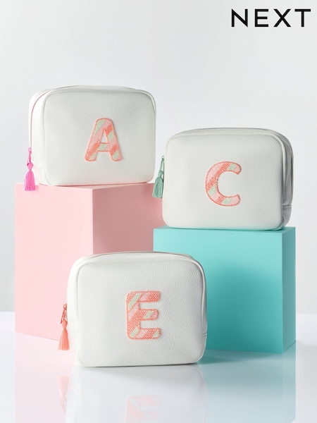 White Alphabet Makeup Bag