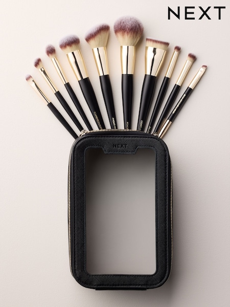 10 Piece Makeup Brush Set with Travel Bag