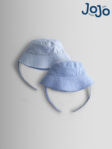 JoJo Maman Bébé Light Blue Gingham Reversible Bucket Hat