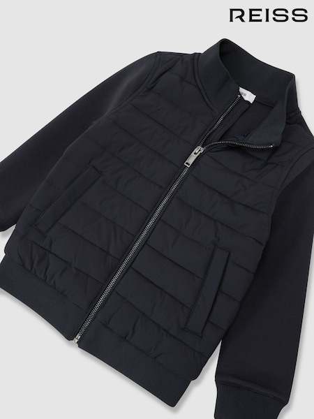 Reiss Navy Flintoff Quilted Hybrid Zip-Front Jacket