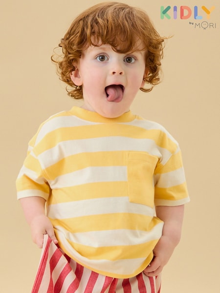 KIDLY by MORI Yellow Striped Soft Cotton Oversized T-Shirt