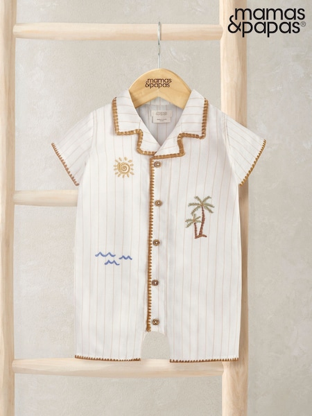 Mamas & Papas Cream Holiday Embroidered Shirt Romper