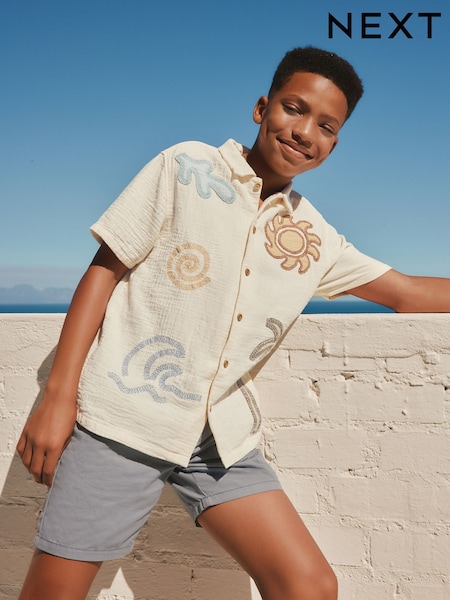 Ecru Short Sleeve Revere Collar Double Cloth Shirt (3-16yrs)