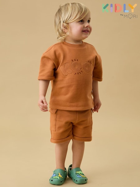 KIDLY by MORI Brown Loopback Soft Cotton Shorts With Side Pockets