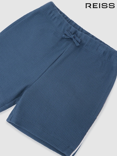 Reiss Blue Echo 9-13 yrs Cotton Textured-Knit Piped Shorts