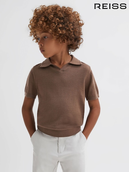 Reiss Brown Sugar Duchie Senior Merino Wool Open Collar Polo Shirt