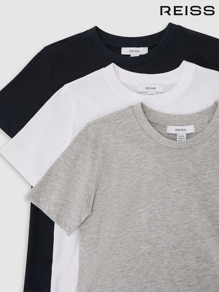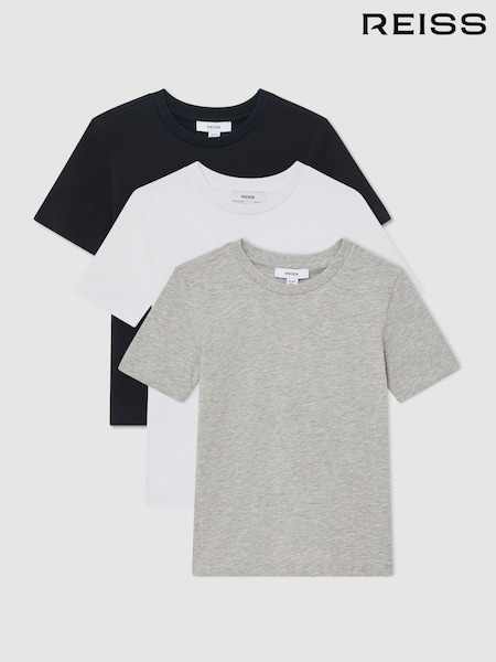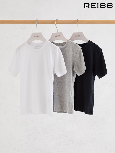 Reiss White/Navy/Grey Bless 3 Pack Cotton Crew-Neck T-Shirts