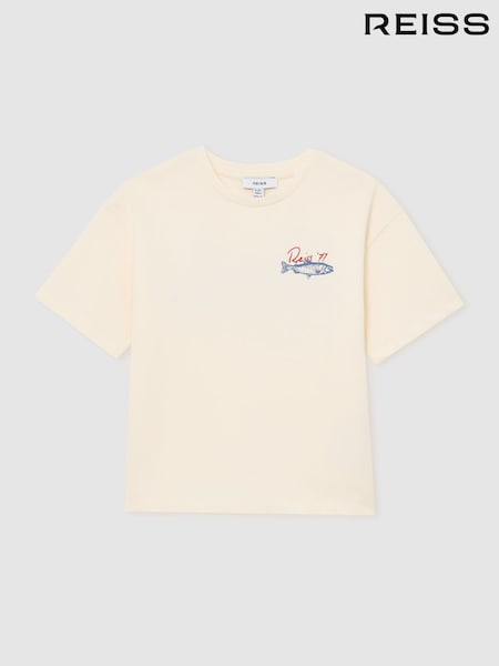 Reiss White Morgan Cotton Fish Logo Print T-Shirt