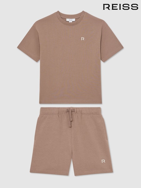 Reiss Brown Avern Set 13-14 yrs Logo T-Shirt and Shorts Set Cotton-Blend