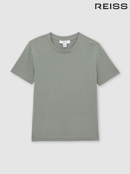 Reiss Dark Sage Bless Cotton Crew-Neck T-Shirt