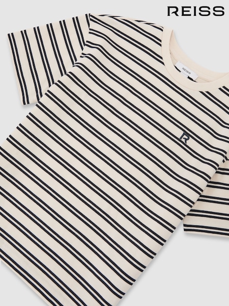 Reiss Navy/White Emerson Cotton Stripe Logo-Embroidered T-Shirt