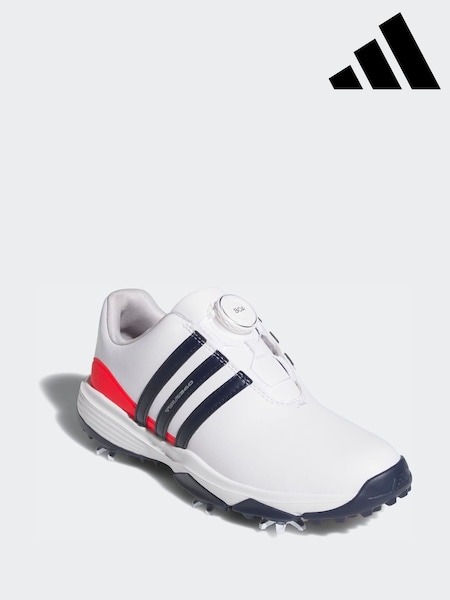 adidas Golf White/Blue Tour 360 24 Boa Kids Shoes