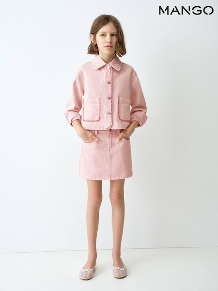 Mango Pink Stitch Detail Denim Jacket
