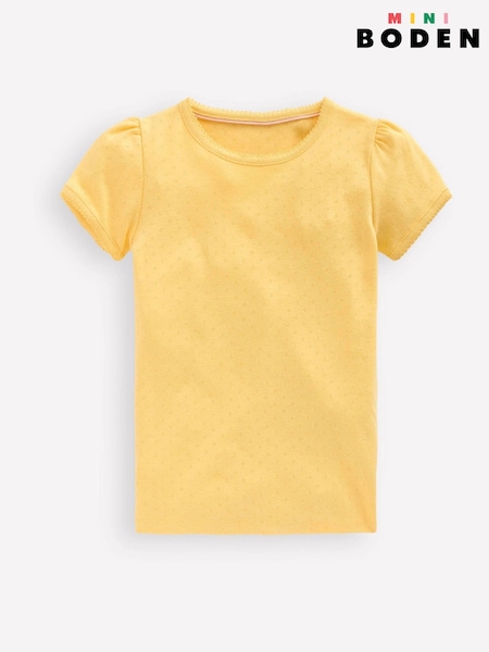 Boden Yellow Short Sleeve Pointelle Top